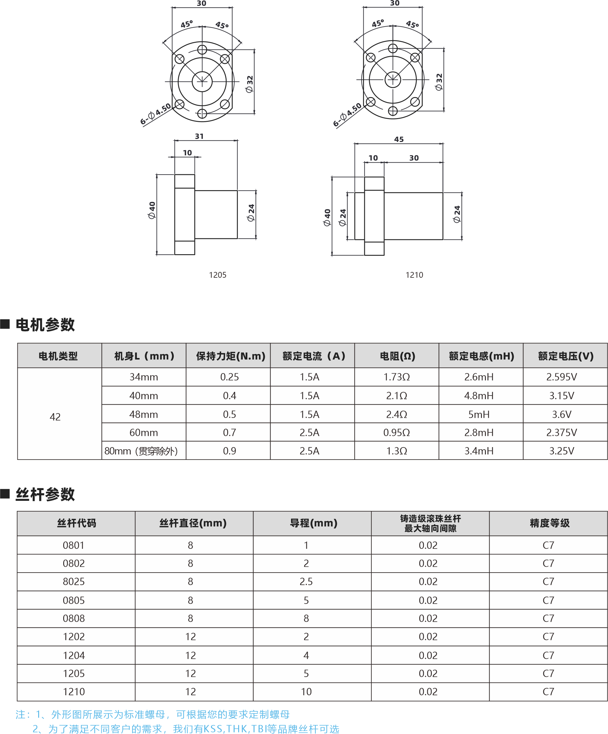 42系列滾珠絲桿電利 相數(shù) 步距角精度 IP等級 認證 絕綠等級 運行環(huán)境溫皮 2 土5% 40 ROHS CEISO9001 B ( 130C ) -20C- +50C 外形圖 螺母外形圖 150+1 1375 202