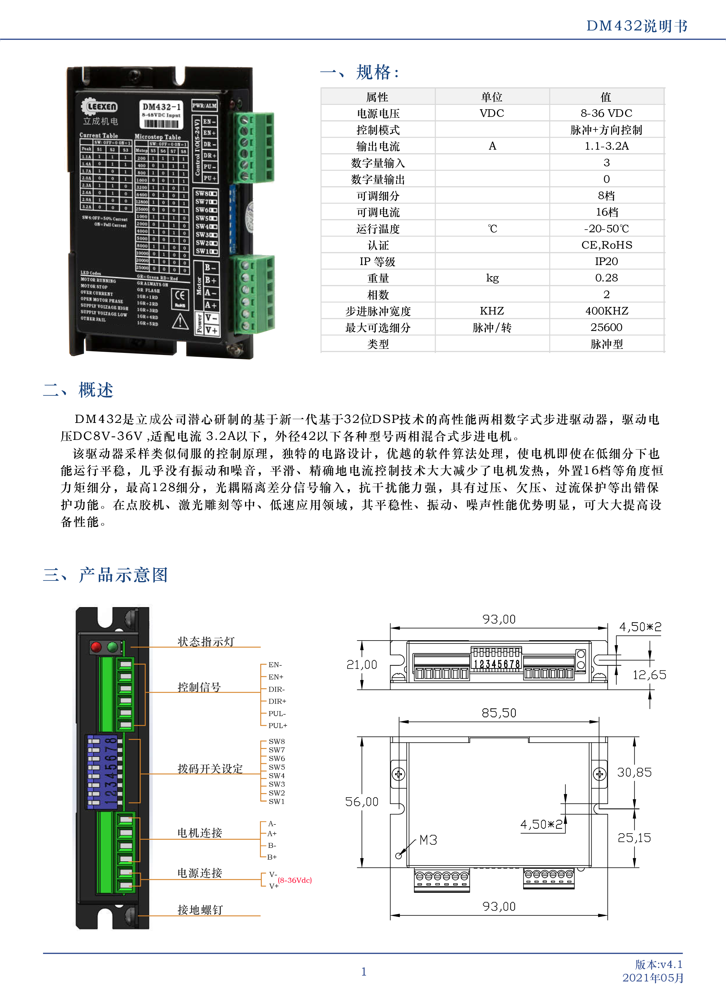 立成機(jī)電DMDM432-1開環(huán)步進(jìn)電機(jī)驅(qū)動(dòng)器