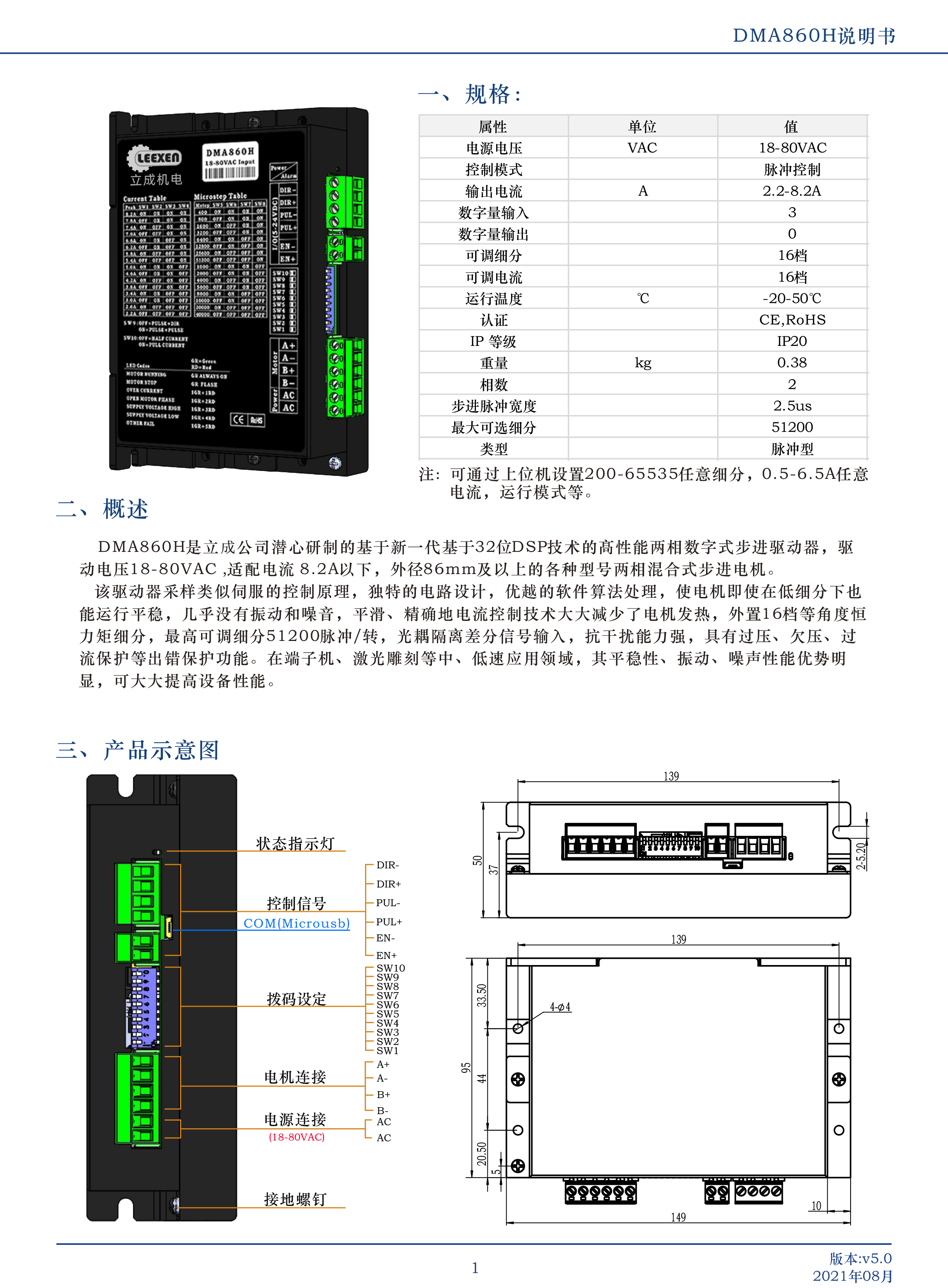 立成機(jī)電DMA860H-1步進(jìn)電機(jī)驅(qū)動,寬電壓AC適配86/110/130步進(jìn)電機(jī)