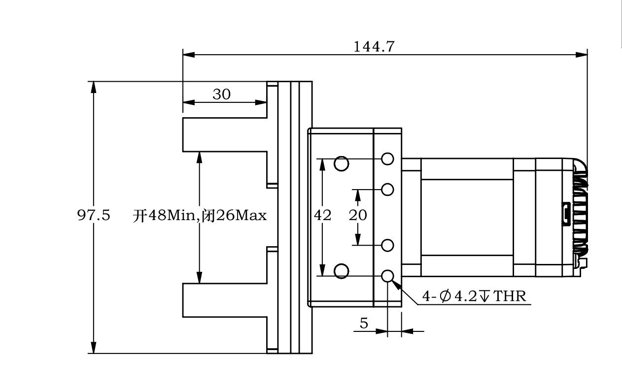 ## 集成一體化優(yōu)勢(shì)盡顯 傳統(tǒng)分體夾爪由多個(gè)獨(dú)立部件組成,如驅(qū)動(dòng)器、電機(jī)、控制器等,各部件之間需要繁瑣的布線(xiàn)和安裝調(diào)試,不僅占用大量空間,還增加了故障風(fēng)險(xiǎn)和維護(hù)成本。集成式步進(jìn)伺服電動(dòng)夾爪則將這些功能高度集成于一體,體積小巧緊湊。從資料中的尺寸數(shù)據(jù)可知,其整體結(jié)構(gòu)精致,僅重約0.2Kg,能夠輕松安裝在各種自動(dòng)化設(shè)備上,節(jié)省了寶貴的安裝空間,減少了設(shè)備整體體積,為生產(chǎn)線(xiàn)的布局優(yōu)化提供了便利。這種集成一體化設(shè)計(jì)大大簡(jiǎn)化了系統(tǒng)架構(gòu),減少了部件之間的連接環(huán)節(jié),降低了因連接松動(dòng)等問(wèn)題導(dǎo)致的故障概率,提高了系統(tǒng)的穩(wěn)定性和可靠性,使得設(shè)備運(yùn)行更加穩(wěn)定高效,有效減少了維護(hù)工作量和停機(jī)時(shí)間。 ## 精準(zhǔn)位置控制與快速響應(yīng),遠(yuǎn)超傳統(tǒng) 傳統(tǒng)分體夾爪在位置控制精度上往往難以滿(mǎn)足高精度生產(chǎn)需求,其定位誤差較大,容易導(dǎo)致抓取位置不準(zhǔn)確,影響產(chǎn)品質(zhì)量。而集成式步進(jìn)伺服電動(dòng)夾爪配備了1000線(xiàn)(4000 Counts)編碼器反饋系統(tǒng),能夠?qū)崿F(xiàn)極其精準(zhǔn)的位置控制。每旋轉(zhuǎn)一圈,編碼器可產(chǎn)生4000個(gè)計(jì)數(shù),通過(guò)精確的反饋機(jī)制,設(shè)備能夠?qū)崟r(shí)監(jiān)測(cè)夾爪的位置,并根據(jù)預(yù)設(shè)指令進(jìn)行精準(zhǔn)調(diào)整,定位精度極高。在抓取微小零部件時(shí),能夠準(zhǔn)確無(wú)誤地完成操作,有效避免了因位置偏差導(dǎo)致的抓取失誤。